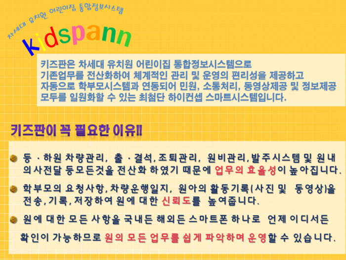 유아들의 안전보장 그리고 원과 학부모의 소통증진을 위해 탄생한 키즈판(kidspann)이