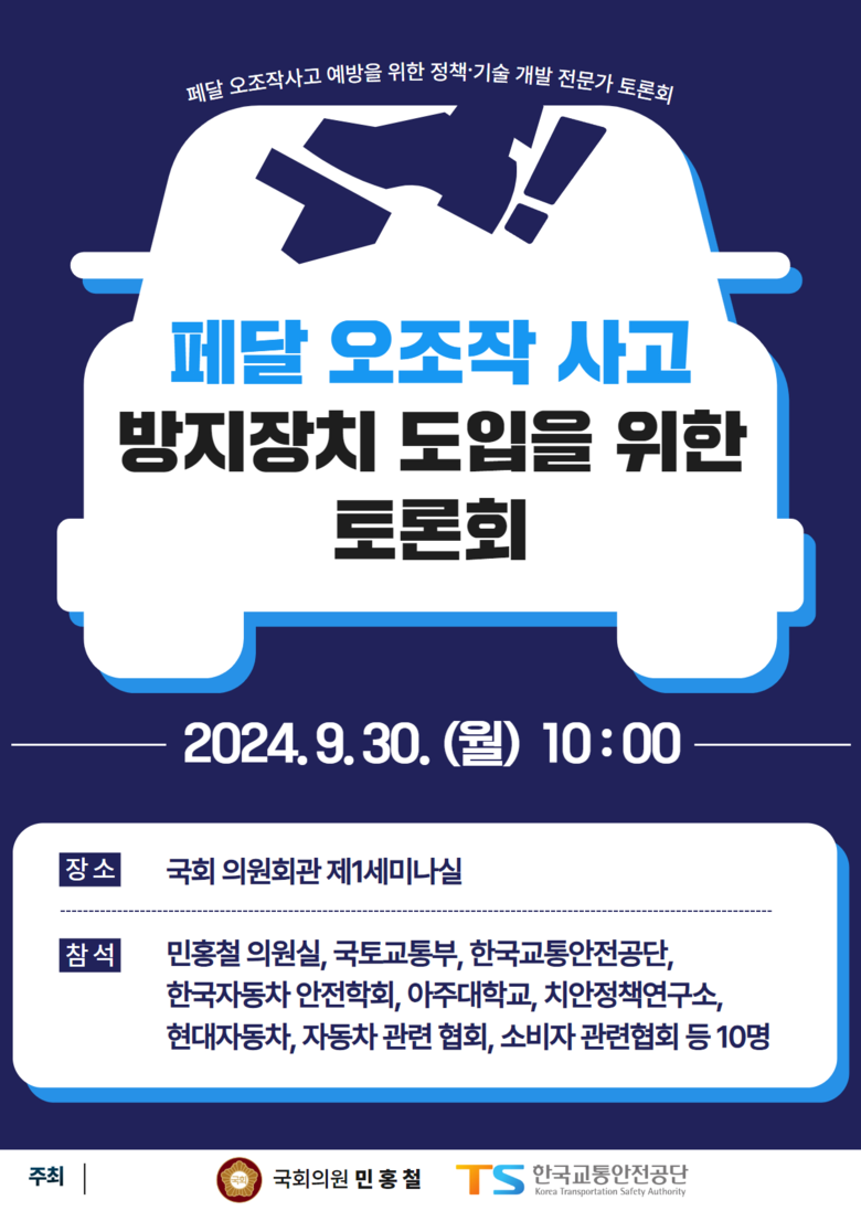 이번 토론회는 최근 이슈가 되고 있는 자동차 페달 오조작 사고와 관련하여 국내외 현안을 점검하고, 사고 예방을 위한 정책 개발 방안을 모색하기 위해 마련되었으며,