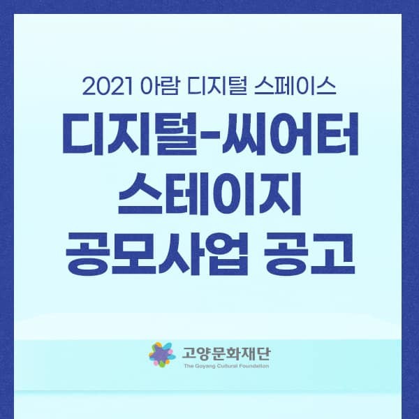 [부자동네타임즈 김인수기자] 고양문화재단(대표이사 정재왈)은 기술-예술 융복합 공연의 성장을 지원하는 <2021 디지털-씨어터 스테이지 공모사업>을 본격 추진한다. 신청 및 접수는 오는 3월 14일까지이다.