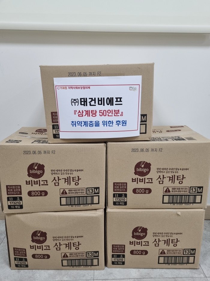가좌동 특화사업은 지역 나눔가게의 후원을 받아 매달 진행하는 후원물품 지원 사업이다. 이날은 혹서기에 홀로 힘들어하실 독거노인과 장애인을 위해 지역 대표 후원기업인 ㈜태건비에프에서 삼계탕을 지원해 어르신들의 건강한 여름나기를 응원했다.