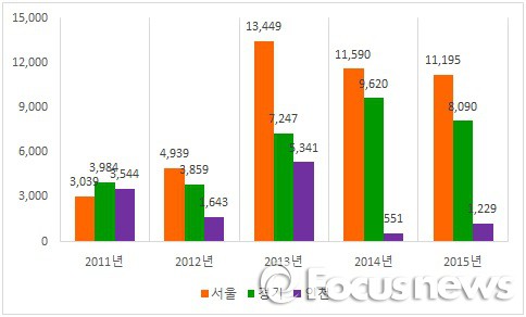 서울의 경우 지난 2011년부터 2012년까지는 입주물량이 5000가구에 미치지 못했으나, 2013년부터는 매년 1만가구 이상이 공급됐다.