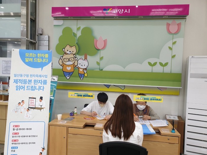[부자동네타임즈 김인수기자] 고양특례시 일산동구(구청장 방경돈)는 제적등본의 어려운 한자로 인해 불편을 겪는 민원 해소를 위해 민원인 요청 시 한자를 읽어주는 「제적등본 읽어주기 한자독해사업」을 운영 중이라고 밝혔다.