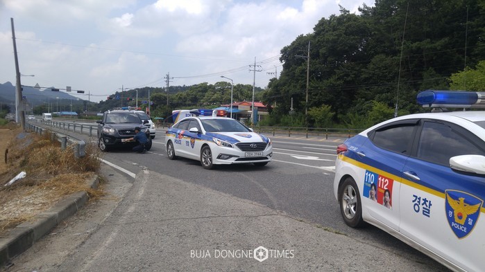 이에 진안방향으로 도주한 난폭차량은 마침, 무전속에 들리는 위급한 상황을 진안경찰서 한재식 부소장과 이기수 팀장들이 이를 놓칠 일이 없었다. 이들은 바로 순찰차량과 사고차량 등 3대가 출동하여 길목을 차단시켰다.