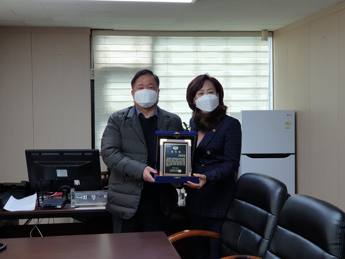 [부자동네타임즈 김인수기자] 서울특별시의회 보건복지위원회 김경영 의원(더불어민주당, 서초구 제2선거구)이 1월 8일(금) 오전 11시 대한안마사협회 사무실에서 서울시 시각장애인 안마원 발전에 기여한 공로를 인정받아 대한안마사협회로부터 감사패를 수상했다.