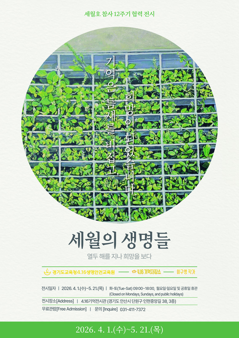 두 전시는 서로 다른 공간과 작품 세계를 통해 세월호 참사 12주기의 의미를 입체적으로 조명한다. 하나의 전시는 교실의 시간과 관계의 기억을 되새기고, 다른 하나의 전시는 생명의 지속과 희망의 회복을 비춘다.