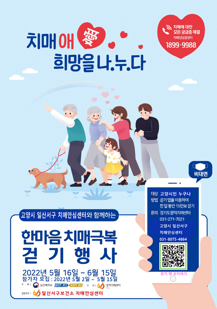 한마음 치매극복 걷기행사는 고양시민이면 누구나 참여가능 하다. 참가자 모집기간은 5월 2일부터 5월 15일까지다.