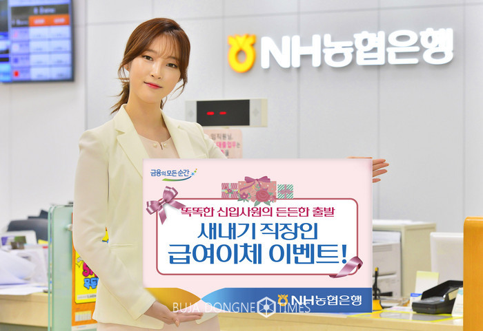 [부자동네타임즈 이현재 기자] NH농협은행(은행장 이경섭)은 12월 11일 부터 내년 2월 28일까지「새내기 직장인 급여이체 이벤트」를 실시한다고 12일 밝혔다.