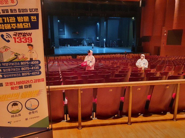 [부자동네타임즈 김인수기자] (재)고양문화재단(대표이사 정재왈, 이하 재단)은 공연장 특별 소독 등 신종 코로나 바이러스 감염증 확산 방지를 위해 다양한 조치를 적극 시행하고 있다.