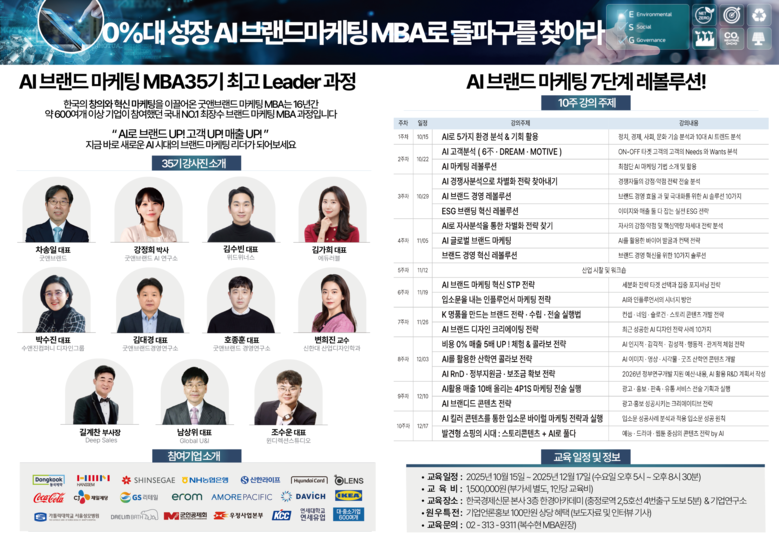 이번 과정을 통해 참가자들은 브랜드 가치 창출과 AI 기술의 융합을 통해 글로벌 경쟁력을 높이는 실질적 역량을 배우게 될 것으로 기대된다.