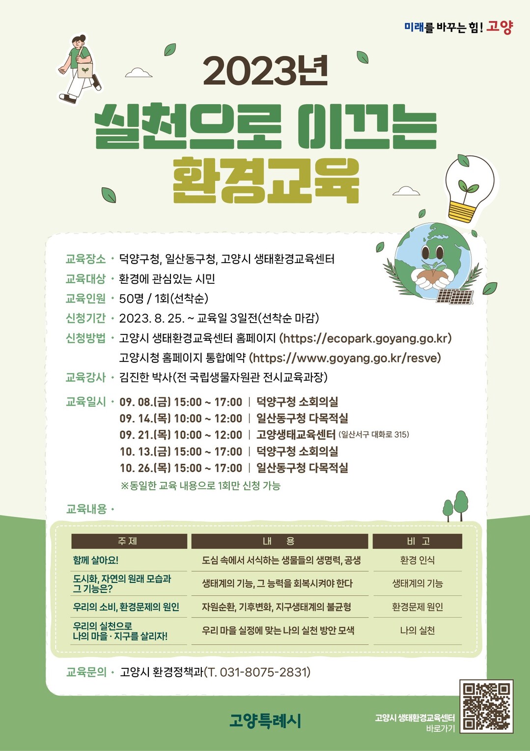 고양시가 개발한 ‘실천으로 이끄는 환경교육’은 환경부로부터 ‘우수 환경교육 프로그램’으로 지정 받은 공신력 있는 교육이다.