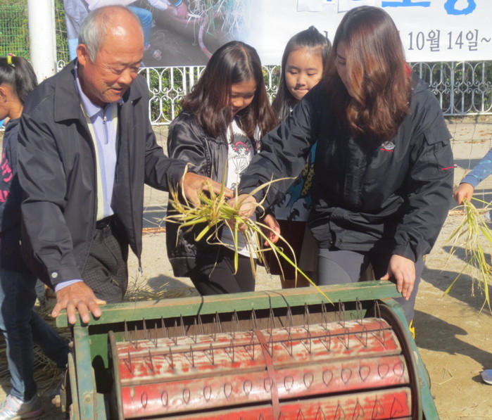 여름에는 어린이들이 직접 물을 주며 모가 얼마나 자랐는지 살펴보았고, 수확해도 좋을 만큼 벼가 익자 지난 17일부터 학교별로 추수 행사가 시작됐다.