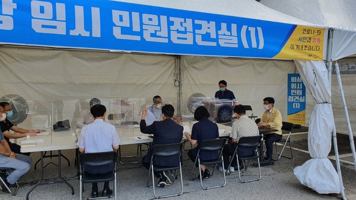 한편, 이번 회의는 코로나19 방역수칙을 준수하여 실내가 아닌 시청 주차장에 설치한 비상 임시 민원 접견실에서 진행했다.