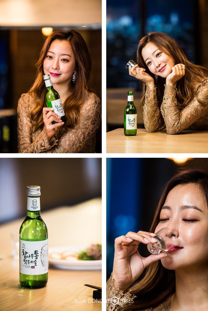이번에 공개된 사진은 참나무통 맑은이슬을 마시며 행복한 미소를 보이는 김희선 씨의 모습을 담았다.제품을 사랑스러운 눈으로 바라보는 모습, 소주 한 잔을 마시고 행복한 듯 애교 띈 얼굴, 술 잔을 품위있게 기울인 모습이 매력적이다.