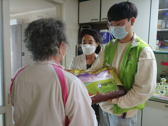 서울의원에서 전달해주신 쌀은 코로나19로 인해 외출이 힘들어진 취약계층 독거노인과 노인부부 세대 100가구에 배부됐다.