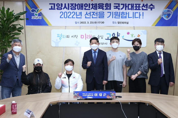 [부자동네타임즈 김인수기자] 고양시가 지난 23일 열린회의실에서 고양시장애인체육회 소속 국가대표 선수인 아이스하키 최배석, 김상락, 볼링 김은효, 스포츠댄스 노명주, 수영 염준두 선수를 격려하고 의견을 청취하는 자리를 가졌다.