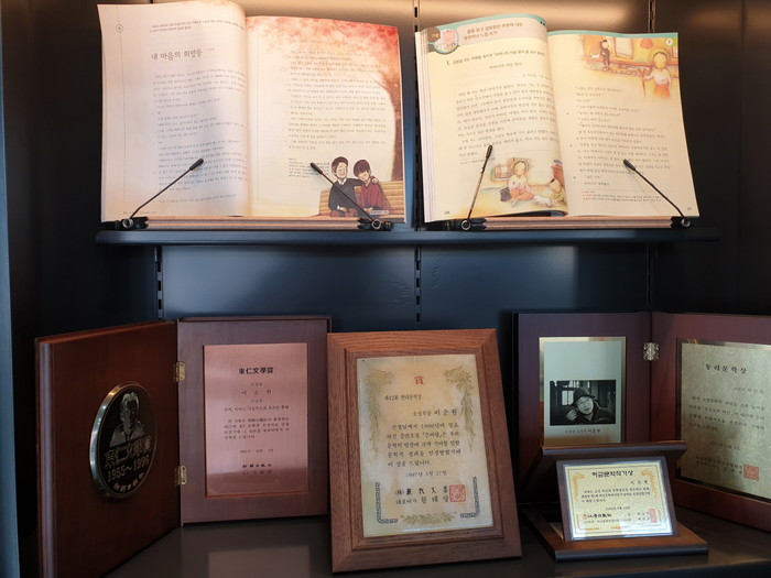 가장 눈에 띄는 것은 벽면 쇼케이스 속 작가 소장품으로, 이순원 작가가 1988년 등단 이후 수상한 동인문학상, 현대문학상, 동리문학상 등 국내 최고 권위의 문학상 상패들이 실물로 전시되어 있다. 문학관에서도 쉽게 볼 수 없는 귀한 상패들은 이순원 작가가 관람객들이 가장 궁금해 하는 것이 무엇일지 고민 끝에 먼저 전시를 제안한 것이다. 이 밖에 작가의 작품들이 실린 국어 교과서와 작가의 사진 등도 볼 수 있다.
