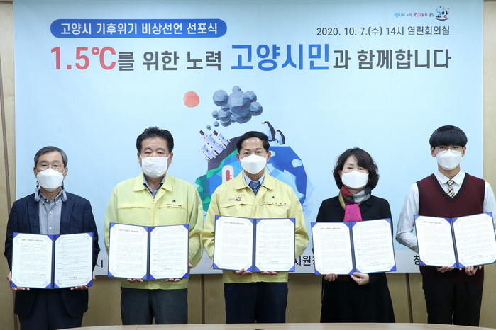 이에 기후위기 극복을 위한 온실가스 감축 정책을 수립, 지구 온도 상승 폭을 1.5℃ 이하로 억제하기 위한 제도적 기반과 기후관련 예산 마련, 학생과 시민 대상 기후와 환경교육 강화로 저탄소 생활양식 실천시민 양성, 시민의 기후위기 행동 확대를 위한 실천연대 결성과 시민 홍보‧교육활동 확대, 자원을 절약하고 재생 가능한 에너지 이용을 확대한다는 내용을 담아 “탄소중립을 선도하는 지속가능한 고양시를 만들겠다”는 의지를 표명했다.