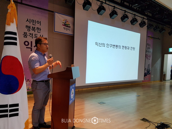 이날 이상림 한국보건사회연구원은 익산시 인구 현주소와 인구증대방안이라는 주제로 익산시의 인구변화추세와 인구정책 방안을 제시했다. 이 연구원은 익산시의 인구변화는 전북의 인구변화 패턴과 유사하며, 인구규모의 감소도 위험요인이지만 인구구조의 빠른 고령화가 심각하다고 밝혔다. 익산시 인구변화의 주요 원인은 20대 인구의 감소가 두드러지고 있으며, 청년세대의 감소는 가임기 여성 인구의 감소로 이어져 출생아수의 감소를 유발한다고 강조했다. 일자리 창출 등의 청년인구 유출을 막을 수 있는 방안과 출산율을 상승시키기 위한 정책 등이 마련되어야 한다고 했다. 또한 이 연구원은 일본 지자체의 정책사례를 통해 앞으로의 전망과 발전방향 등을 제시했다.