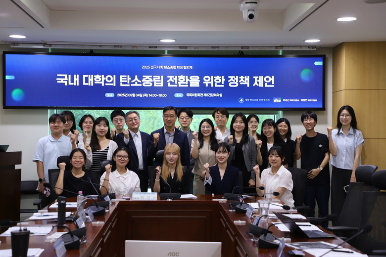국회 기후위기특별위원장 위성곤 의원 ( 제주 서귀포시 , 더불어민주당 ) 은 4 일 ( 목 ) 오후 2 시 국회의원회관 제 5 간담회의실에서 < 국내 대학의 탄소중립 전환을 위한 정책제언 토론회 > 를 개최했다 . 이번 토론회는 국내 대학의 탄소중립 실행을 위한 제도개선 방안을 도출하고 실행력 있는 정책 기반을 모색하고자 마련됐다 .