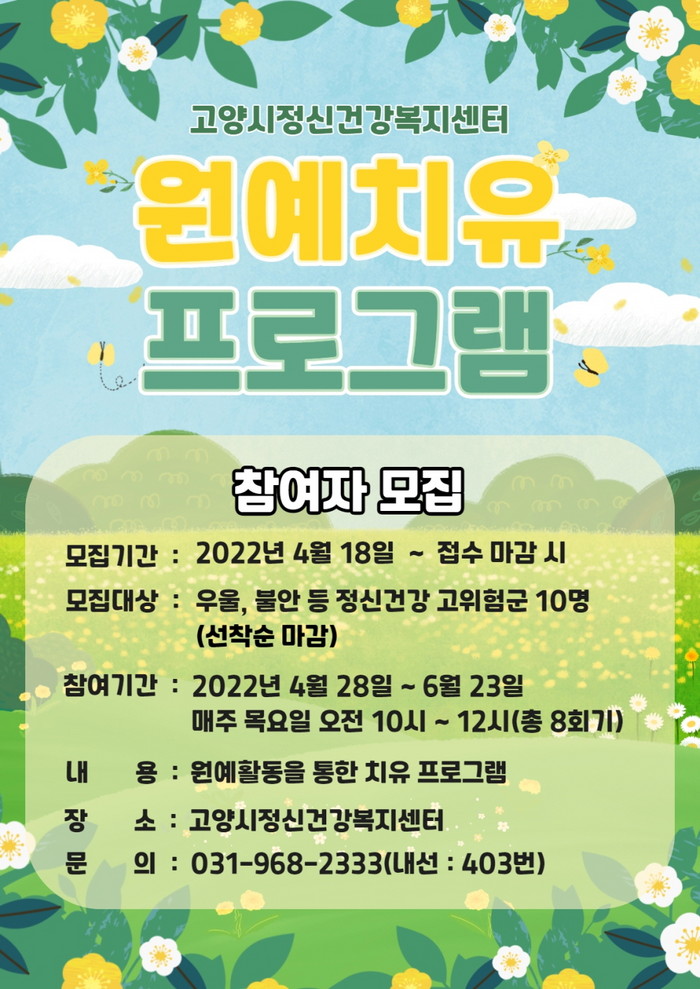 2022년 원예치유 프로그램 참여 문의는 고양시정신건강복지센터로 하면 된다.