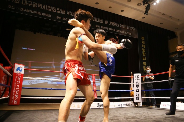 [부자동네타임즈 김인수기자] 코로나19 상황에서 국내 격투기 대회는 거의 정지 상태로 몇몇 대회사를 제외하곤 어느 하나 쉽게 대회를 치르기 어려운 상황이다. 이럼에도 불구하고 MAX FC와 대구광역시 무에타이 협회가 힘을 합쳐 4일 대구시 중구 대백프라자 10층 프라임홀에서 '대구광역시 무에타이 협회장배 MAX FC 컨텐더리그 20'을 개최했다.