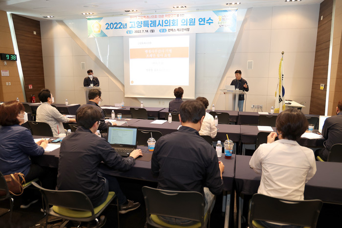 [부자동네타임즈 김인수기자] 고양시의회(의장 김영식)는 7월 18일 1일 일정으로 킨텍스 제2전시장에서 고양시의회 의원 34명 및 의회사무국 직원 등 총 60여명이 참석한 가운데 ‘제9대 고양특례시의회 의원 전체연수’를 실시하였다.