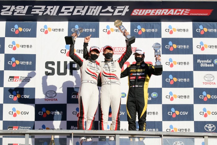 [부자동네타임즈 김인수기자] 같은 팀 소속 드라이버들이 포디움에 나란히 올라서는 장면이 2020 CJ대한통운 슈퍼레이스 챔피언십 5라운드 일정에서 연달아 펼쳐졌다. 24일 강원도 인제군의 인제스피디움에서 열린 대회 5라운드 일정이 강원국제모터페스타로 진행된 가운데 슈퍼 6000 클래스 결승에서 엑스타 레이싱의 노동기와 이정우가 나란히 1, 2위를 차지해 함께 포디움에 올랐다.