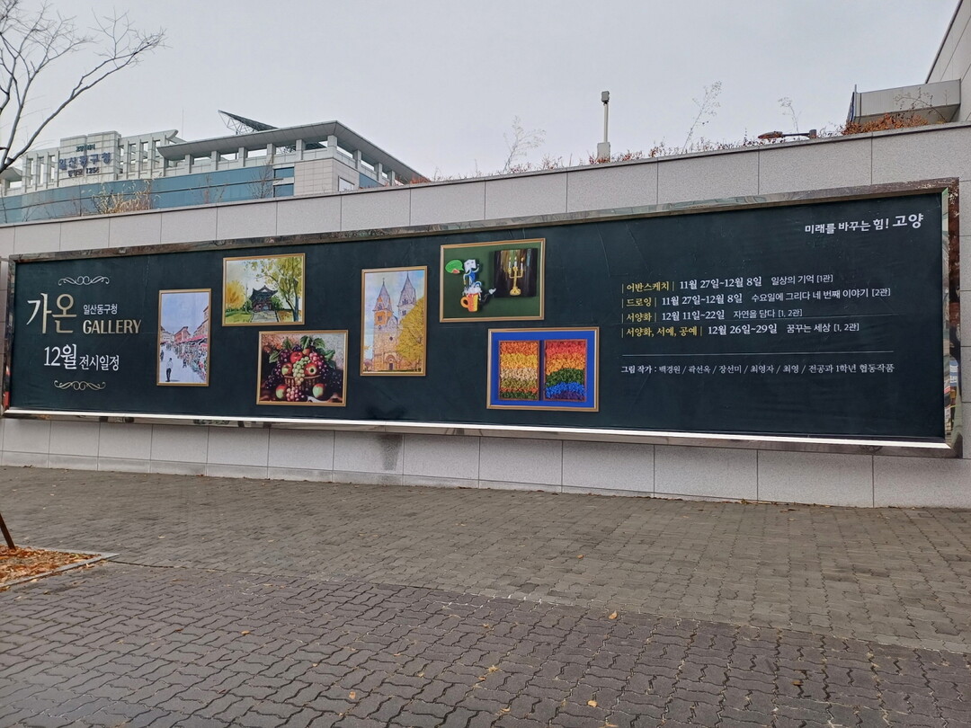 [부자동네타임즈 = 김인수 기자] 고양특례시 일산동구는 오는 12월부터 ‘갤러리 가온’의 전시를 홍보하는 현수막을 게시한다고 28일 밝혔다.