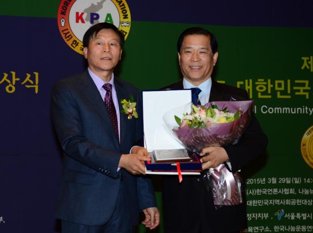 박 의장은 29일 국회현장기념관 강당에서 (사)한국언론사협회, 시정일보, 나눔뉴스가 공동으로 주최하는 ‘2015대한민국지역사회공헌대상 시상식‘에서 △지방의회 사상 최초로 국제컨퍼런스 개최 △서울시의원 행동강령 조례 발의 △서울시의회 청렴·개혁상 확립 △한강뚝섬유원지 주민휴식공간 확충사업 등을 높이 평가 받아 특별 대상 수상자로 선정됐다.