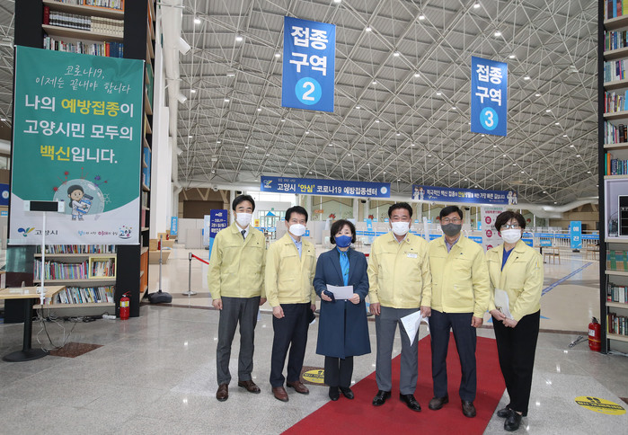 [부자동네타임즈 김인수기자] 고양시의회(의장 이길용)는 3월 29일 고양꽃전시관 내 설치한 고양시 안심 코로나 19 예방접종센터를 방문하여 민·관·군 협조체계를 점검하고 보건소 관계자들을 격려했다.