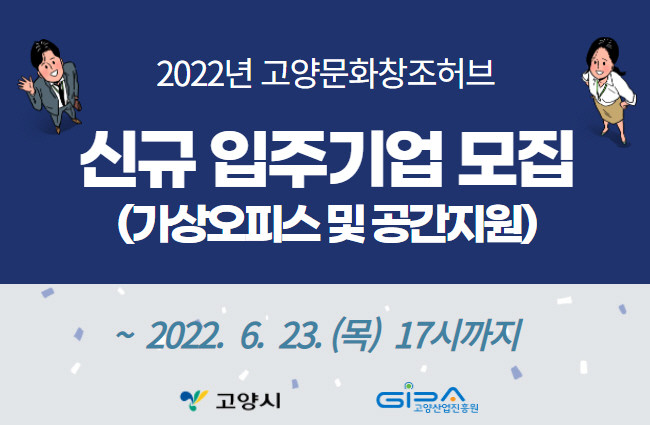 [부자동네타임즈 김인수기자] 고양산업진흥원(원장 오창희)이 운영하는 고양문화창조허브에서 오는 23일까지 신규 입주기업을 모집한다.