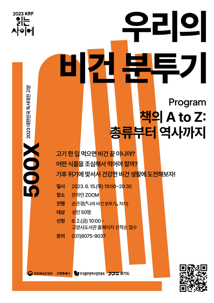 고양시는 제10회 2023 대한민국 독서대전 개최를 기념하여 다양한 책의 도시 연중 프로그램을 펼치고 있다. ‘책의 A to Z: 총류부터 역사까지’는 도서관 자료 분류 체계에 따른 10가지 분야를 다루는 아람누리도서관의 기획 강연이다.