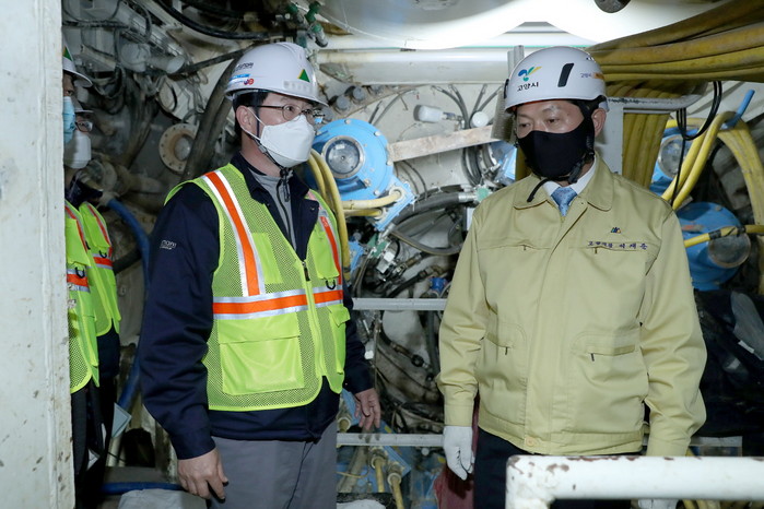 [부자동네타임즈 김인수기자] 고양시(시장 이재준)가 코로나19 상황에서 드라이브 스루 선별진료소 운영 등 선제적 대응과 예방에 온 힘을 다하면서도 지난 6일, 시 주요 현안사업인 철도사업 추진현황 점검을 위해 수도권광역급행철도(GTX) A노선 킨텍스역 및 대곡∼소사선 복선전철사업 한강횡단 현장을 방문해 지하굴착 현황을 확인하고 안전시공을 당부했다고 밝혔다.