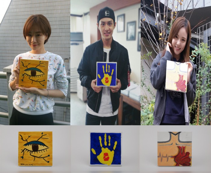 | △ 배우 박효주(좌측), 도지한, 이열음이 'GIFTY 프로젝트'에 참여해 재능 기부에 나선다. 스타가 그린 그림은 12월 8일까지 커먼그라운드 3층 컬쳐 스페이스에서 전시된다.<사진제공=열음엔터테인먼트> |