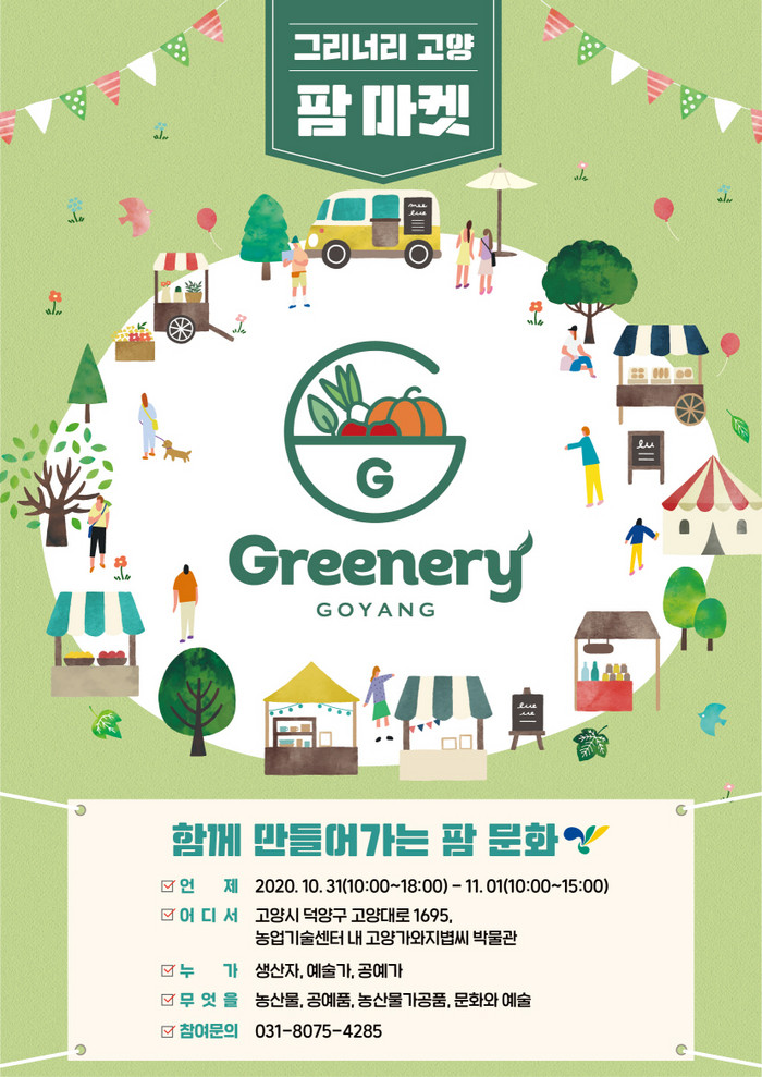 농업인과 공예가, 문화예술인이 함께하는 이번 ‘그리너리 고양 팜 마켓’은 지역민들이 직접 생산한 농산물과 공예품, 가와지쌀, 플라워 등을 활용한 마켓과 레스토랑, 문화공연 등이 풍성하게 진행된다.