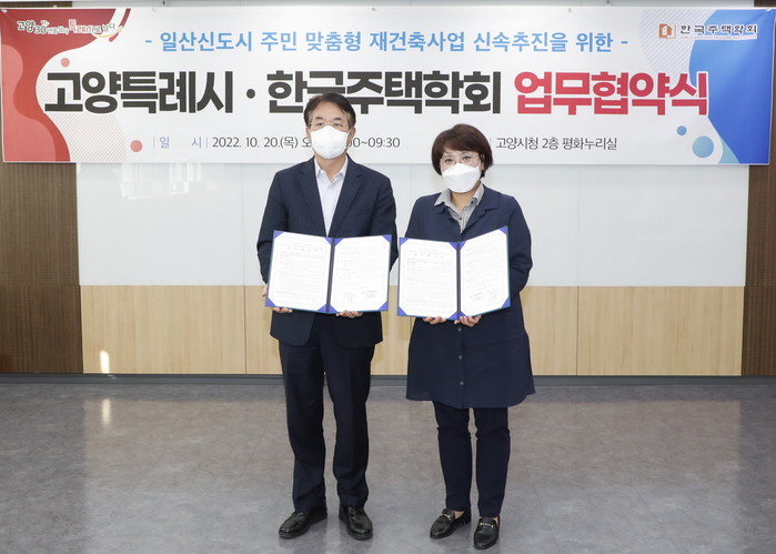 20일 시는 시청 평화누리실에서 한국주택학회와 ‘일산 신도시 재정비 사업의 합리적 추진’을 위한 업무협약을 체결, 신속한 추진 속에서도 제대로 된 전문성을 갖춘 주민맞춤형 1기신도시 재정비에 나선 것.