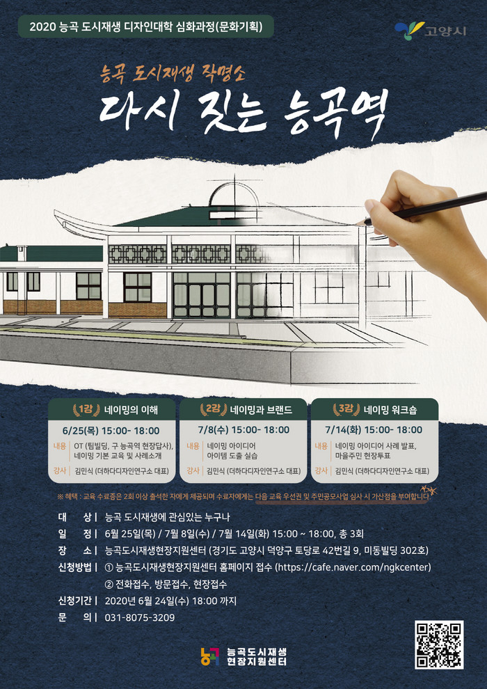권유철 센터장은 “올해 7월 준공 예정인 구 능곡역에 대한 주민들의 관심이 무척 많다”며 “이번에 마련한 도시재생 디자인대학 심화과정을 통해 공간에 대한 이해와 네이밍을 함께 기획해보면 다채로운 아이디어를 모을 수 있을 것”이라며 많은 참여를 기대했다.