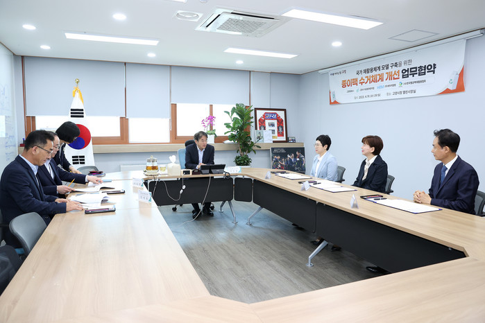 [부자동네타임즈 김인수기자] 고양특례시(시장 이동환)가 관내 재활용 수집·운반업체의 직접 수거를 통한 국가 재활용사업 표준 모델 구축에 팔을 걷어 나섰다. 고양시는 종이팩 수거 체계를 직접수거로 전환하기 위해 고양시 국공립어린이집, (사)한국멸균팩재활용협회, ㈜에이치알엠과 19일 고양시청에서 업무협약을 체결했다.