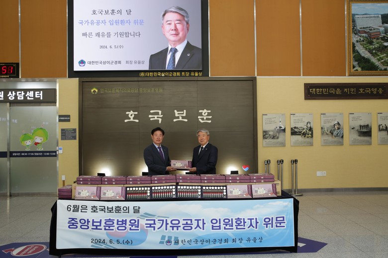 대한민국상이군경회(회장 유을상)는 5일 호국보훈의 달을 기념해 중앙보훈병원을 방문해 쾌유를 기원하며 위문품을 전달했다.