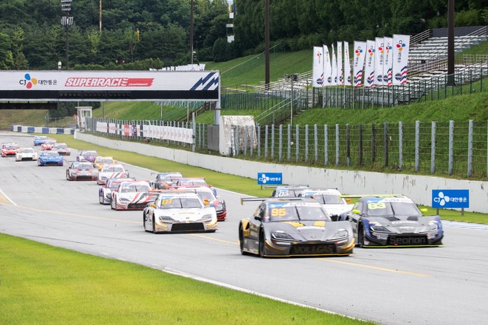 [사진설명] 에버랜드 스피드웨이에서 열린 CJ대한통운 슈퍼레이스 챔피언십 슈퍼 6000 클래스 결승전 스타트 장면.