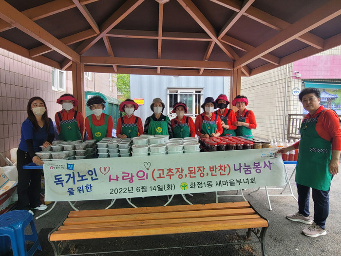 [부자동네타임즈 김인수기자] 고양시 화정1동행정복지센터(동장 황선혜)는 지난 14일, 화정1동 새마을부녀회(회장 김정화)에서 어려운 이웃들을 위해 사랑의 고추장, 된장, 반찬 나눔 행사를 실시했다고 전했다.