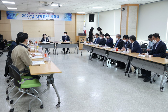 단체협약 체결식은 15일 고양인재교육원에서 이재준 고양시장과 장혜진 고양시통합공무원노동조합 위원장을 비롯한 간부 공무원, 노조 임원진 등 총 16명이 참석한 가운데 진행됐다.