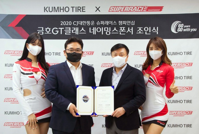 금호타이어의 김상엽 부사장과 슈퍼레이스 챔피언십을 주관하는 ㈜슈퍼레이스의 김동빈 대표는 20일 후원 협약서에 서명하며 상호 협력을 약속했다. 금호타이어는 올해 초 GT 클래스의 공식 타이어 공급사로 참여해 클래스의 안정적인 운영을 뒷받침한 데 이어 GT 클래스에 ‘금호 GT’라는 새로운 이름까지 선사하면서 모터스포츠에 대한 변함없는 애정을 드러냈다. 금호타이어 김상엽 부사장은 이번 후원에 대해 “금호타이어는 국내외 다양한 모터스포츠 대회의 공식 타이어로 활약하며 글로벌 타이어 브랜드로서 기술력을 인정받고 있다. 이번 네이밍 스폰서십 체결을 통해 양사가 모두 윈윈하고 국내 모터스포츠 활성화에 적극 기여할 수 있도록 최선을 다할 것”이라고 말했다. 김동빈 대표는 “국내 모터스포츠 발전을 위해 금호타이어가 보여주신 변함없는 관심과 지원에 감사 드린다”고 화답했다.