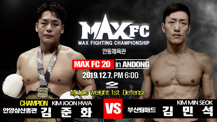 한편 MAX FC 20은 12월 7일 경상북도 안동시 안동체육관에서 개최된다. TV스포츠채널 IB 스포츠와 네이버 스포츠TV를 통해 오후 6시부터 생중계된다.