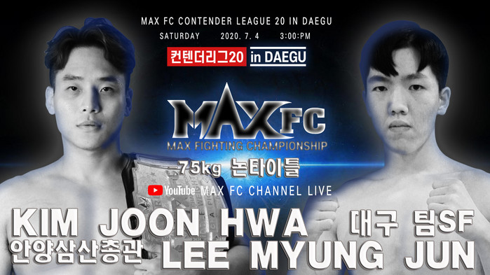 한편 ‘대구협회장기 무에타이 대회 및 맥스 FC 컨텐더리그 20’은 7월 4일 대구광역시 대백프라자에게 열린다. 코로나19 여파로 무관중 경기로 진행되며 맥스 FC 공식 유튜브 채널에서 생중계된다. 메인이벤트로 미들급 챔피언 김준화가 대구의 신예 이명준과 논타이틀 매치를 진행한다.