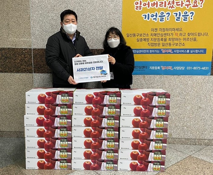 [부자동네타임즈 김인수기자] 고양시 일산동구보건소가 설 명절을 앞두고 지난 26일 협력의료기관인 일산21세기병원(원장 권기영) 후원을 받아 관내 취약계층에게 사과 21박스(5kg)를 전달했다.