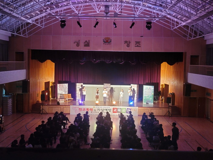 고양시 후원으로 진행된 이번 공연은 일산대화중학교 체육관에서 1학년 학생 150명을 대상으로 상연됐다. 2~3학년 학생은 교실에서 영상으로 시청했다.