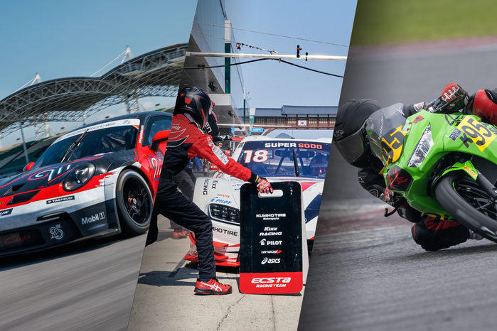 [사진 설명] ‘포르쉐 카레라 컵 아시아’(왼쪽부터), 2023 CJ대한통운 슈퍼레이스 챔피언십 슈퍼 6000, 바이크 레이스 ‘가와사키 닌자 컵’