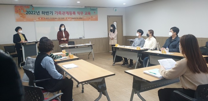 [부자동네타임즈 김인수기자] 고양특례시 일산동구(구청장 방경돈)는 지난 23일 상황실에서 12개 동 가족관계등록 및 통합민원 직원들을 대상으로 업무 역량 강화를 통한 신속·정확한 행정서비스 제공을 위해 『`22년 하반기 가족관계등록 직무교육』을 실시했다.