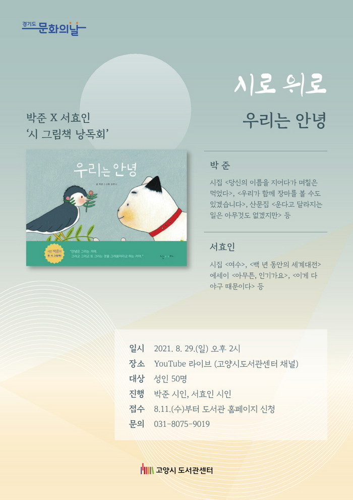 고양시 도서관에서는 지난 5월부터 매달 마지막 수요일 문화가 있는 날, 시인과 함께하는 낭독회 시로 위로를 운영하고 있다.